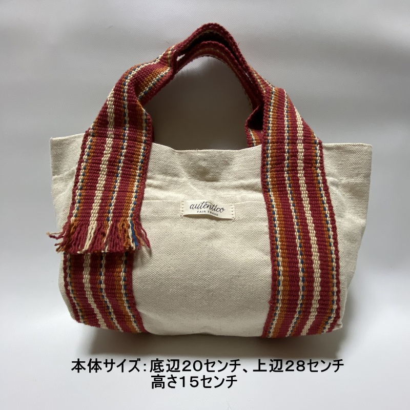 サイズ:高さ15センチ、横幅上部28センチ、横幅下部20センチ、マチ8センチ