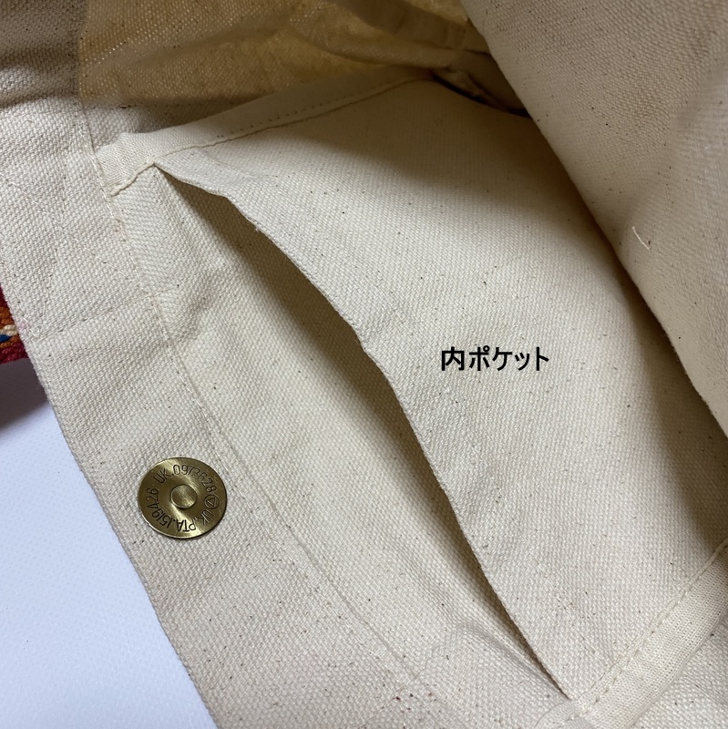 帆布生地の内ポケット1つ。パイピングで、内側もきれいに処理してあります。