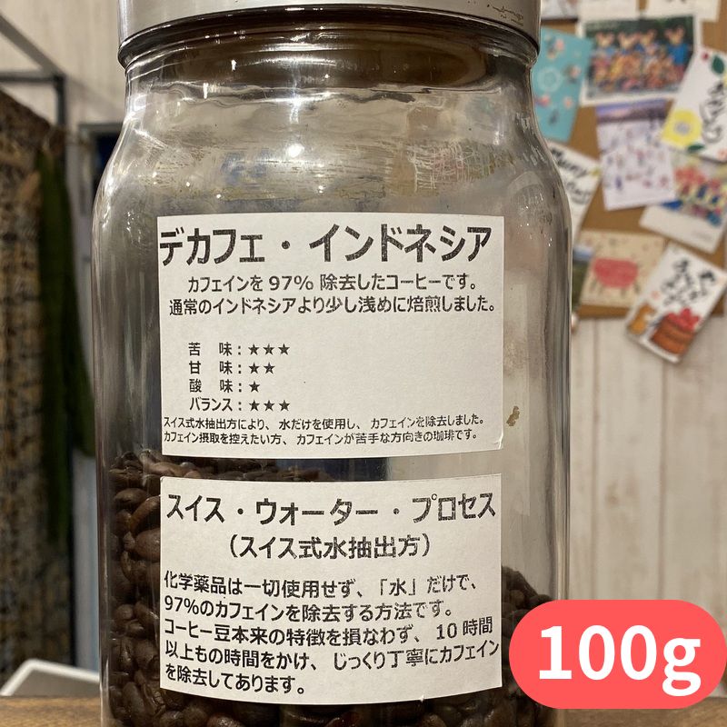 カフェインを97%カット!デカフェ・インドネシア(100g)【コーヒーは400gまでメール便OK】
